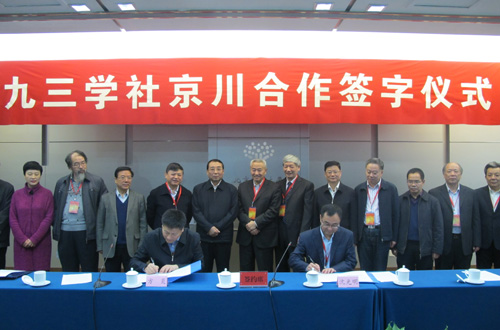 2015年12月9日上午,在九三学社中央全会期间,社北京市委、四川省委举办了一场隆重、简朴、高效、务实的签约仪式。参加仪式的有:九三学社中央常务副主席邵鸿,副主席丛斌、社会服务部部长徐国权;社北京市委主委马大龙,副主委侯义斌、王训练、孟安明、方炎、陆杰华,秘书长刘永泰;社四川省委主委黄润秋,副主委戴晓雁、沈光明、罗懋康、刘建明、刘建军、多央娜姆,秘书长刘虹等。在众多领导和双方相关领域的社员代表共同见证下,“京川合作”正式签约。