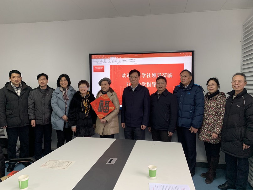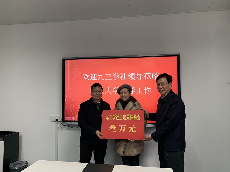 2020年1月16日,新春即将到来之际,九三学社湖北省委副主委、社武汉市委主委梁鸣、社省委秘书长蔡国斌及社武汉市委副主委郭刚艳、汪正兴,秘书长陈胜利等一行六人专程前往江汉大学,为江汉大学支社的李敏同志送去九三王选关怀基金资助金和社组织的关怀慰问。