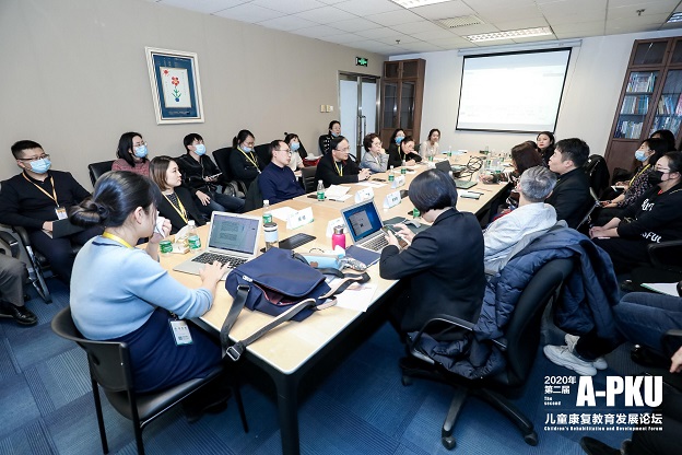 (图为:A-PKU机构领袖共创会中,贾美香老师与儿童康复机构负责人交流沟通)