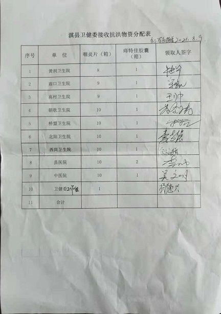 据悉,2021年8月8日,九三王选关怀基金会为鹤壁捐赠的药品物流到了鹤壁市淇县卫健委,目前已经分发到各医疗卫生单位,再由各医疗卫生单位发给需要用药的灾民。这批药品包括:咽炎片87箱34800盒,痔特佳10箱1500盒,药品总价值91.32万元。药品由山东中大千方制药有限公司捐赠。(苏海玲)