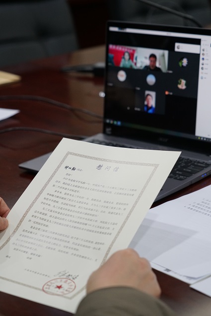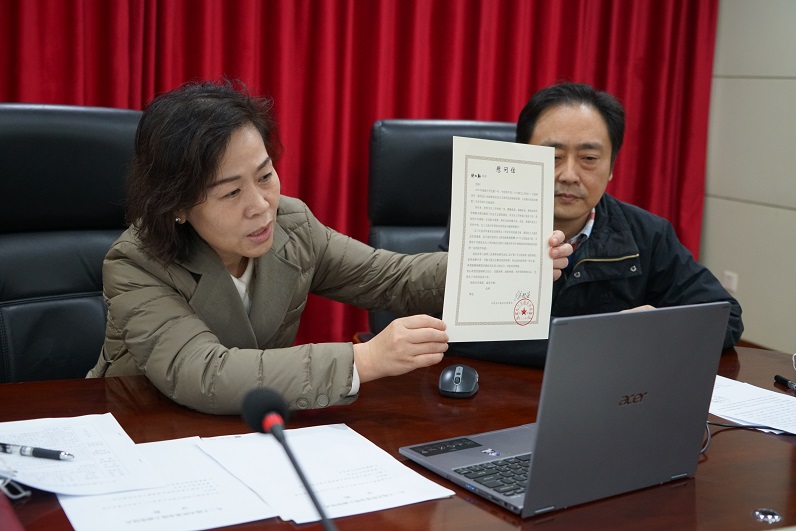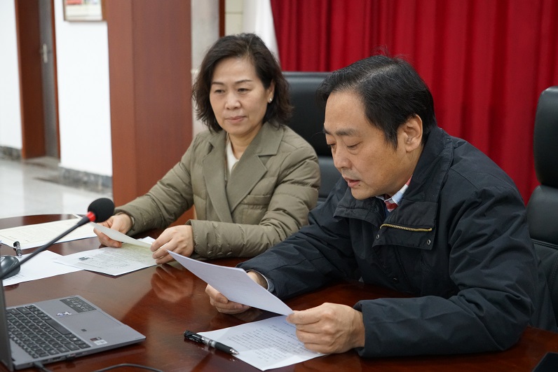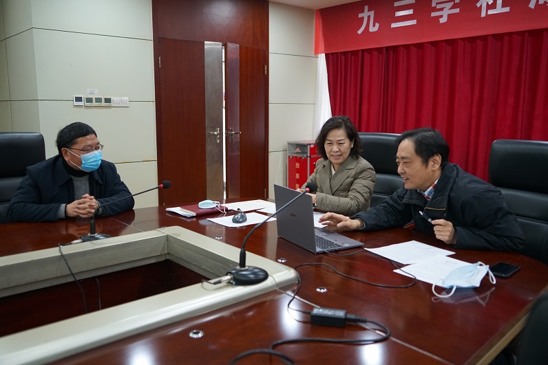 2023年1月10日上午,社省委专职副主委付文芳、秘书长蔡国斌、办公室主任李晖在社省委机关会议室,与 “九三学社王选关怀基金”受助社员郑明义、 邹汉鞍视频连线,致以社组织的问候和新春祝福。