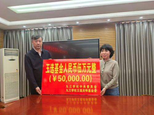九三王选关怀基金是按照九三学社原中央副主席王选同志生前遗愿,由其夫人陈堃銶教授捐赠100万元发起设立的,主要用于为九三学社社员中因病致贫的重病患者提供一定的医疗补助。本次受资助的李丽荣是社四平市委基层组织金融支社的一名社员,自参加工作以来,立足本职工作岗位,履职尽责,在积极参加社四平市委举办的各项活动的同时,还利用业余时间参与心理援助工作,多次进机关、进企业、进学校、进社区,做《家庭教育》和《心理健康》公益讲座分享,多角度延伸社会服务领域,在本职工作和支社发展方面均做出了积极贡献。