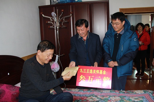 12月27日,入冬以来我市最冷的一天。九三学社中央王选关怀基金会副秘书长赵鑫等三人在九三学社吉林省委副主委、辽源市政协副主席、社辽源市委主委王龙,社吉林省委组织处副处长茅红蕾陪同下,走访慰问了老社员刘凤武,并为他发放了3万元资助金,为我市的基层社员送去了一片寒冬里的温暖。 九三学社中央王选关怀基金会是2006年6月九三学社中央根据原全国政协副主席、九三学社中央副主席、两院院士王选先生的遗愿,在王选先生生前捐款的基础上筹备成立的。基金会是直属于九三中央管理的非营利性机构。基金会通过相关资助及公益活动,资助生活困难的九三学社社员,倡导社会关爱,促进经济社会发展,推动社会主义和谐社会的建设。基金会每年向因病致贫的九三社员提供资助。今年资助的我市社员刘凤武老师今年65岁,是辽源职业技术学院副教授,是九三学社辽源市第五届、第六届副主委。他从教多年来任劳任怨,默默奉献。2016年因患冠心病,在北京安贞医院做心脏搭桥手术,花费近二十万余元。由于老伴也是多年患病,一下子对这个家庭来说遭受了巨大打击。当基金会领导将资助款发放到老人手中后,刘老师十分激动的说“作为基层九三人感谢九三组织的厚爱,感谢九三领导的关怀,感谢九三学社中央王选关怀基金会。 据了解,此次九三学社中央“王选关怀基金会”是第一次来吉林省慰问基层社员,这必将激励吉林省九三社员更加努力工作,为社会、为九三事业多做贡献。 .jpg)